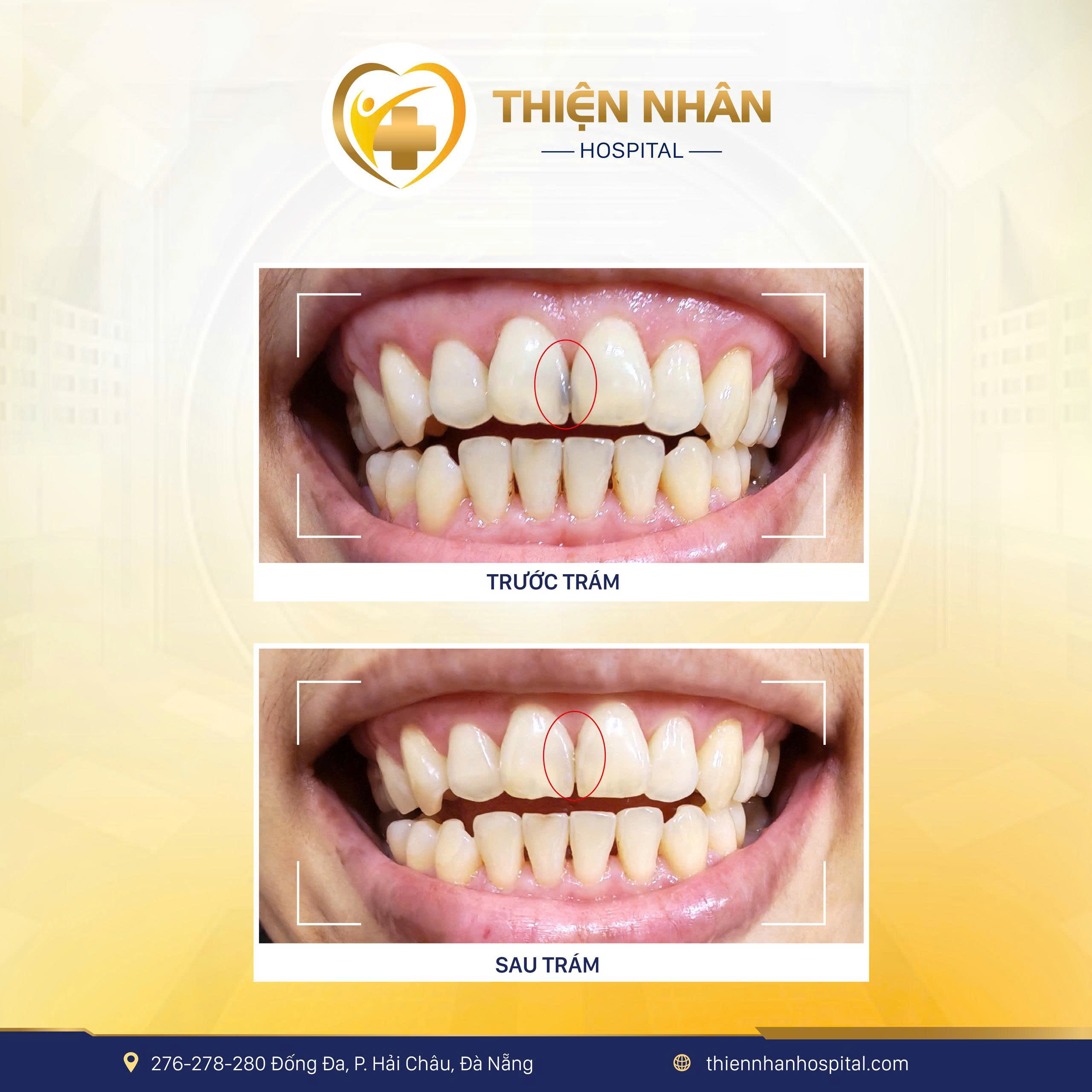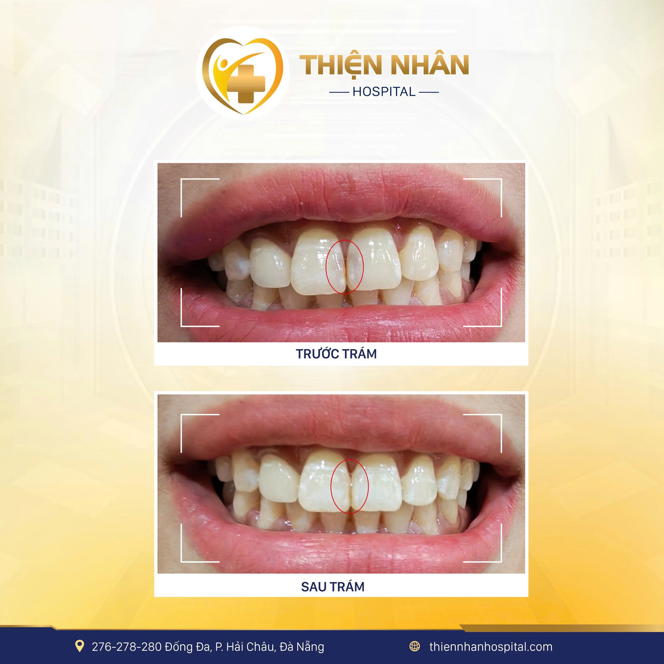 Một trường hợp khác, chị N. đến Thiện Nhân trong tình trạng răng cửa xuất hiện đốm đen, chưa đau nhưng gây mất thẩm mỹ rõ rệt. Sau thăm khám, bác sĩ Răng Hàm Mặt tại Thiện Nhân chỉ định trám răng composite thẩm mỹ, giúp: